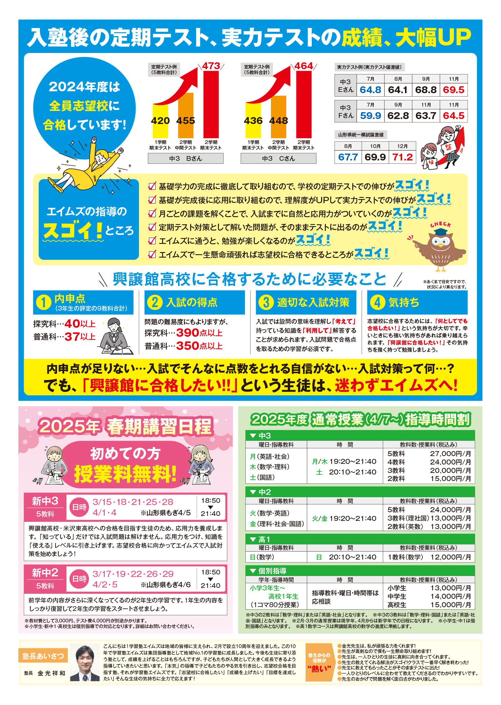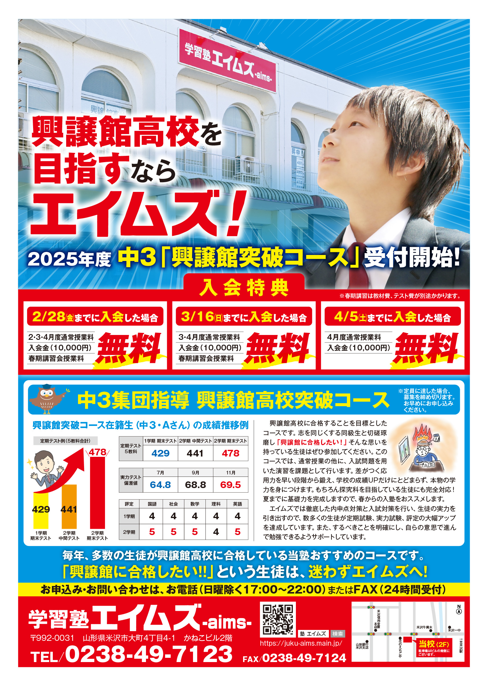 興譲館を目指すならエイムズへ!!※お問い合わせ・お申し込みは、0238-49-7123までお電話ください。